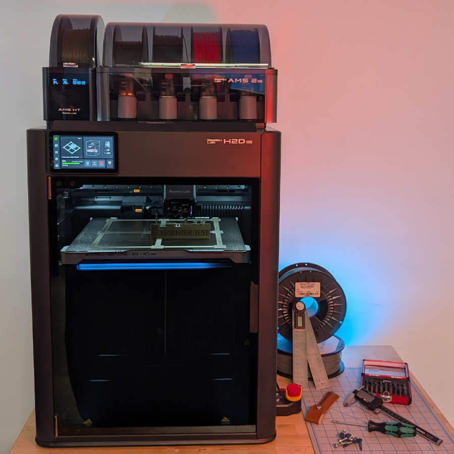 Materiali: PLA, PETG, TPU, PVA, BVOH, ABS, ASA, PC, PA (nylon), PET, PPA‑CF/GF, PPS, PPS‑CF/GF